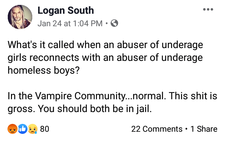 Who died and made Logan judge and jury? If someone did, I guess that’s a second-hand account as well and we should just play along. But you’re not a sheep, are you dear reader? Let’s hope not, for the sake of yourself and actual victims. They will be the ones lost in the mix by people who bear false witness and people who contribute to spreading the bearing of false witness? They are the mob. Don’t be a sheep. Bear your fangs with dignity, dear protectors. All. Day. Every. Day.